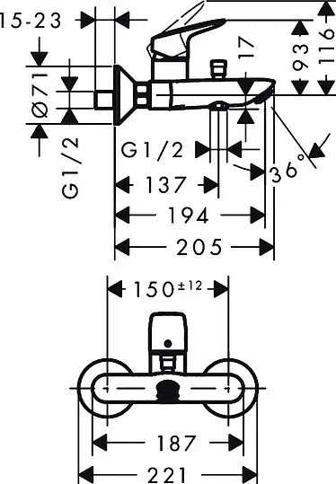 Hansgrohe Logis Смеситель для ванны, настенный, цвет: черный матовый