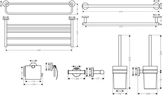 Hansgrohe Logis Universal Набор аксессуаров для ванной Set 5 в 1, латунь цвет: хром 41728000