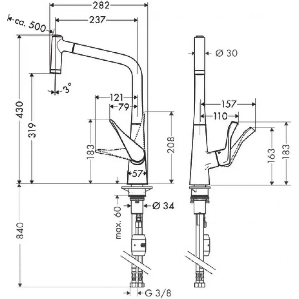 Hansgrohe Metris M71 Смеситель для кухонной мойки однорычажный 320 EcoSmart, с выдв. изл. цвет: хром 14780000