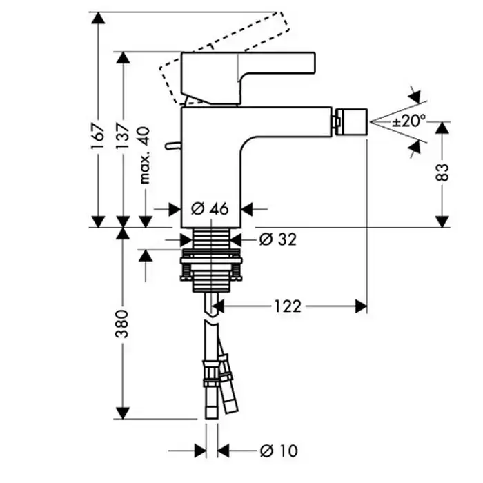 HG Metris S Смеситель для биде с донным клапаном, на 1 отв., цвет: хром