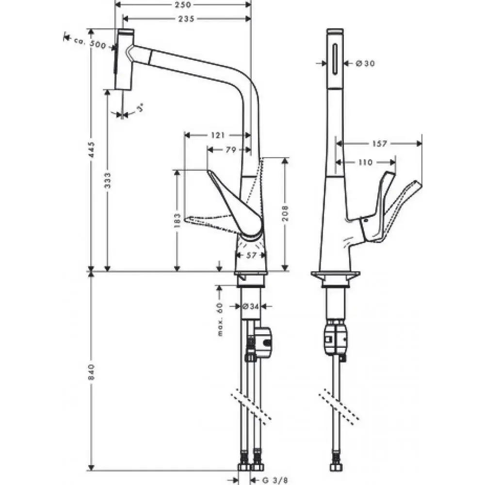 Hansgrohe Metris Select M71 Смеситель для кухонной мойки однорыч. 320, с выдв. изливом цвет: хром 73803000