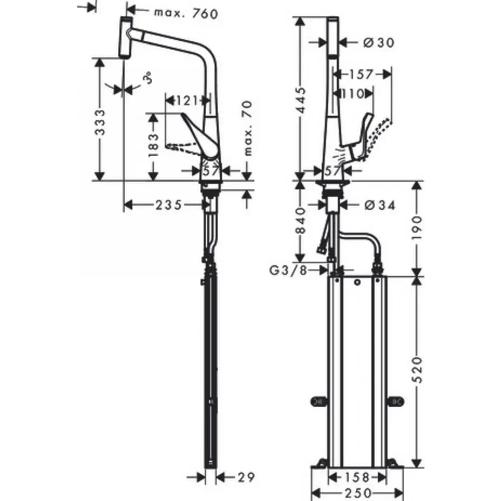 Hansgrohe Metris Select M71 Смеситель для кухонной мойки однорыч. 320, с выдв. изливом цвет: хром 73803000
