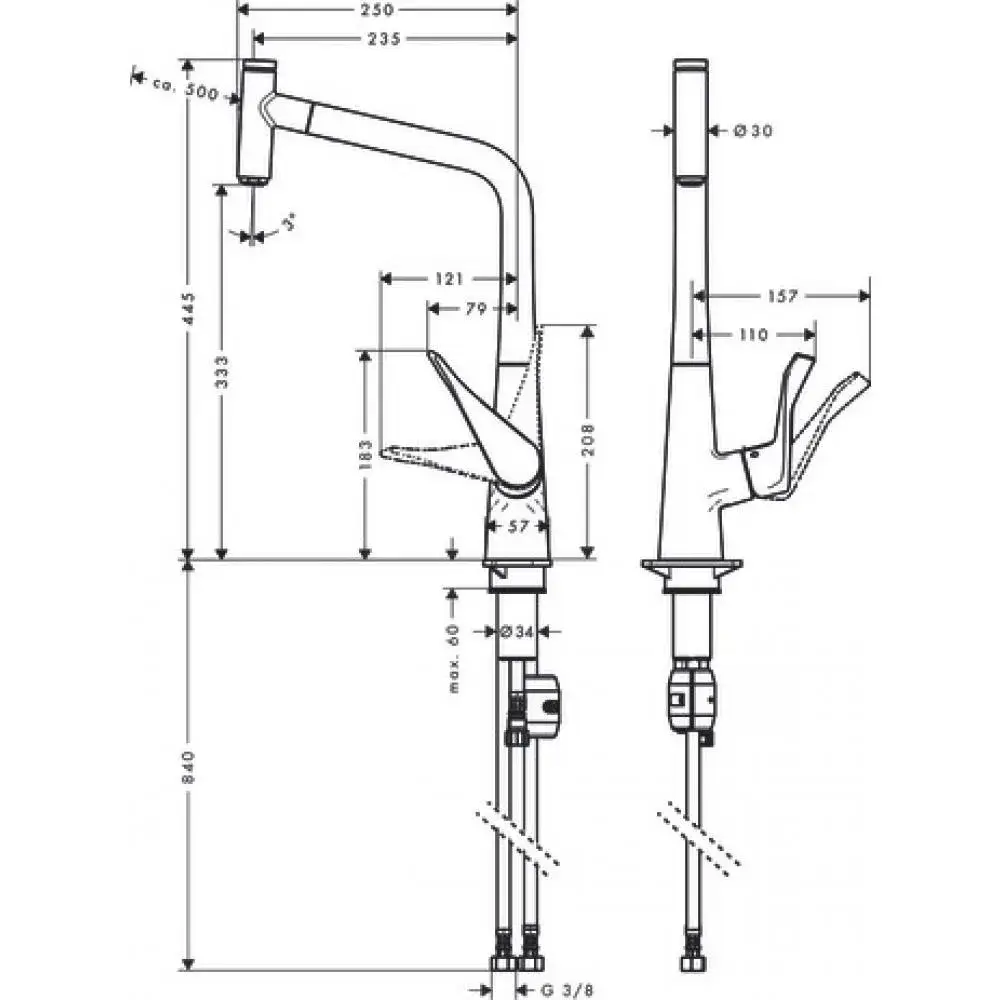 Hansgrohe Metris Select M71 Смеситель для кухонной мойки однорыч. 320, с выдв. изливом цвет: хром 73803000