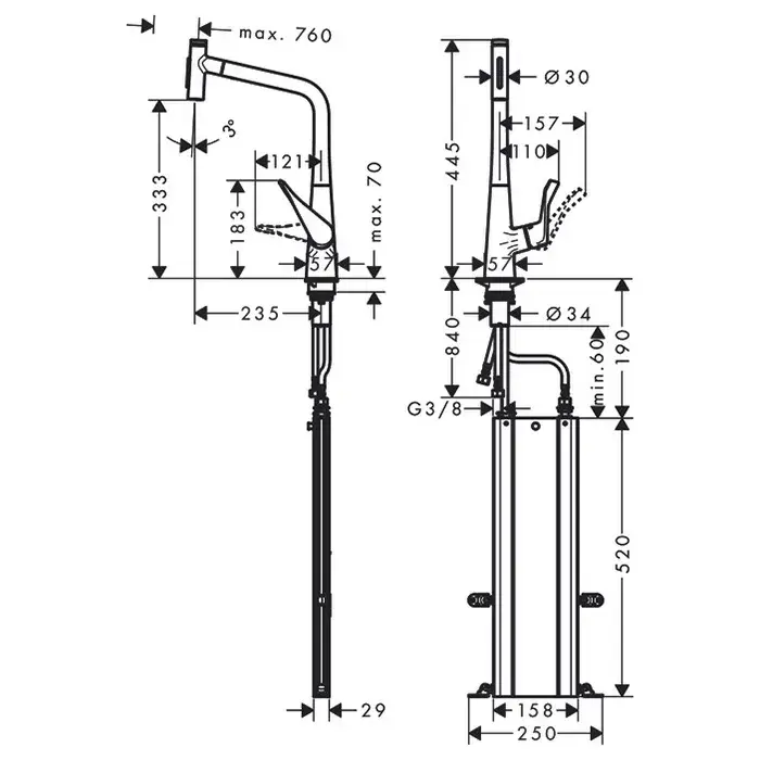 Hansgrohe Metris Select M71 Смеситель для кухонной мойки на 2 отв., с выдв. излив. цвет: мат. черный 73818670