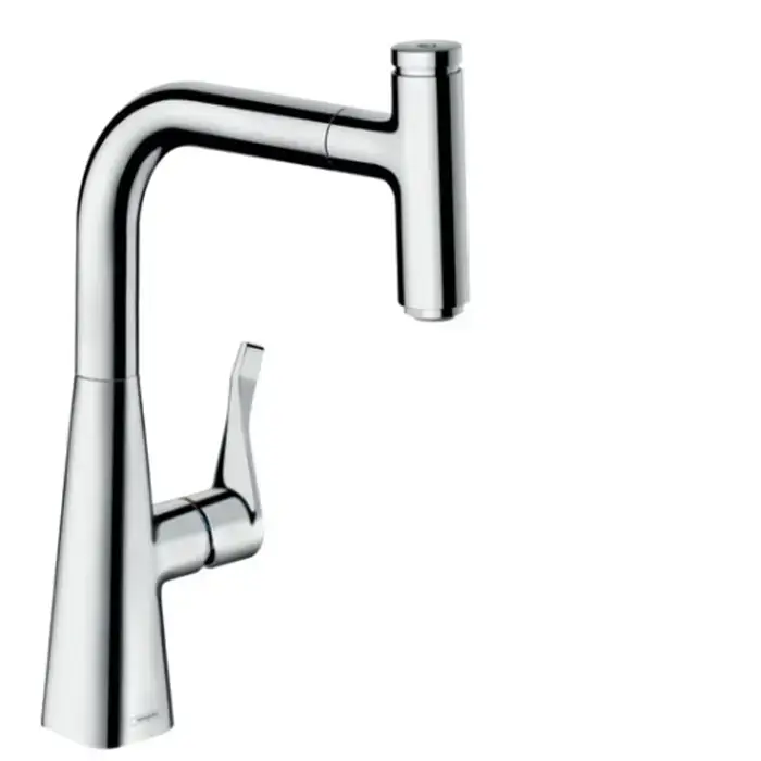 Hansgrohe Metris Select M71 Смеситель для кухни на 1 отв, поворотный и выдвижной излив 1jet, кнопка вкл/выкл воды, цвет: хром