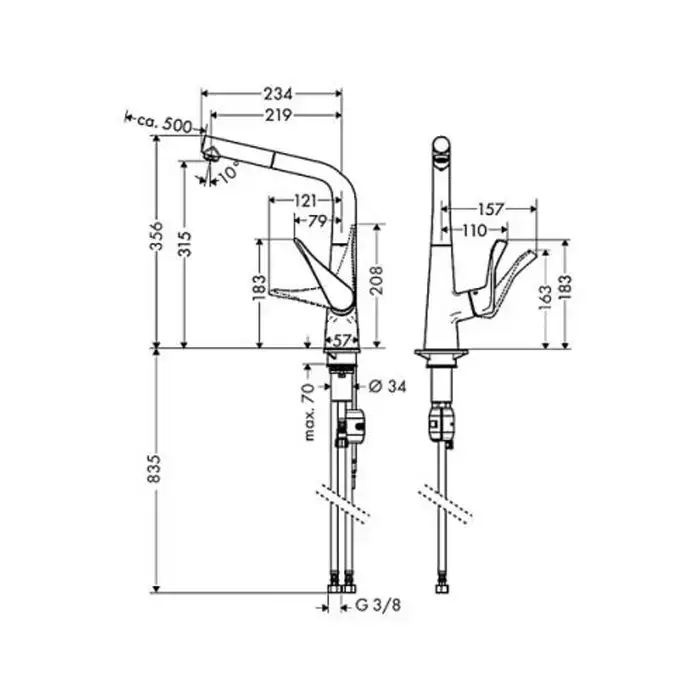 HG Metris Смеситель для кухни на 1 отв, поворотный и выдвижной излив, цвет под сталь