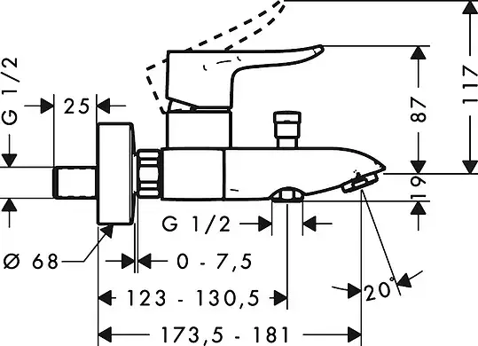 Hansgrohe Metris Настенный смеситель для раковины, однорычажный, излив: 17.7см., внешняя часть, цвет: хром