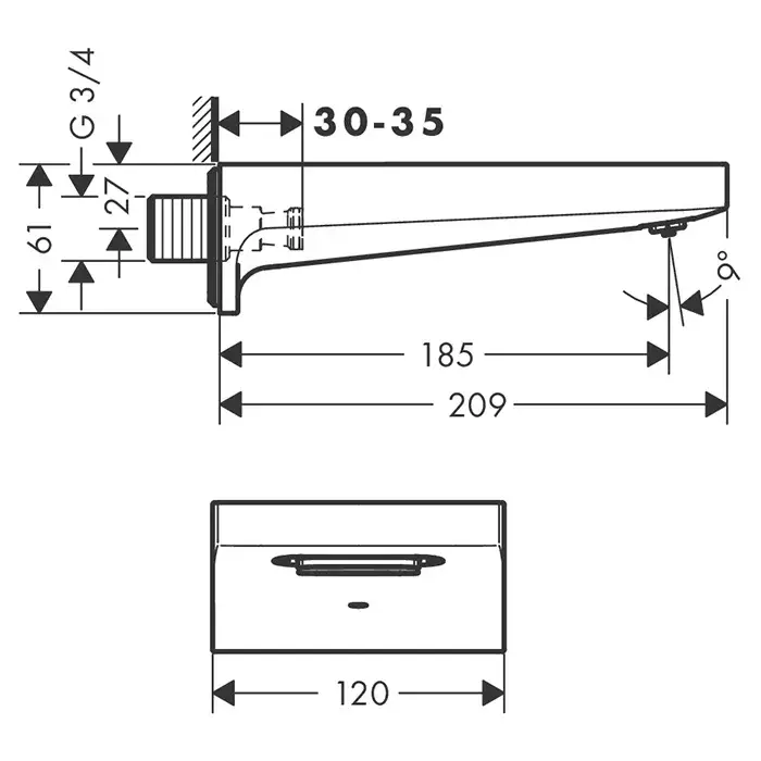 Hansgrohe Metropol Излив настенный для ванны 18,5 см, цвет: шлифованная бронза 32543140