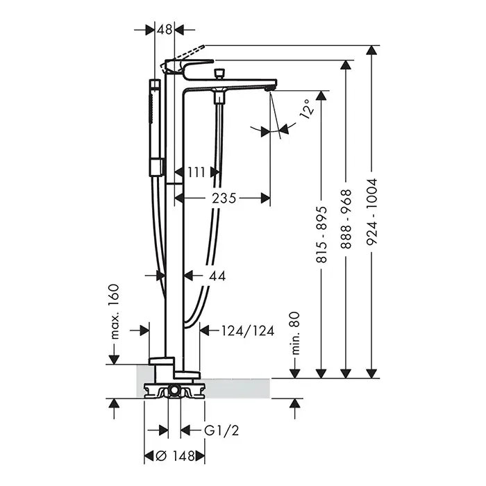 Hansgrohe Metropol Смеситель для ванны напольный однорычажный с изливом, отдельност., цвет: черный 32532670