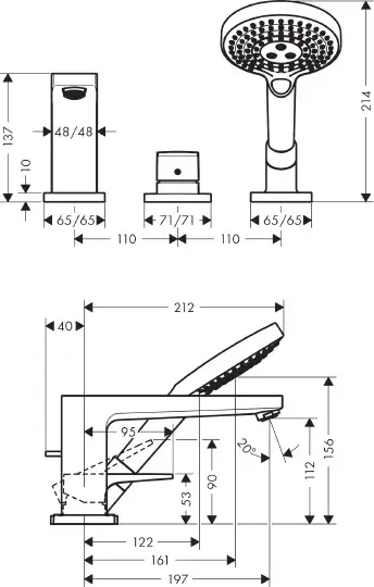 Hansgrohe Metropol Смеситель на борт ванны на 3 отв. однорыч., с руч. душем, внеш. часть, цвет: хром 32550000
