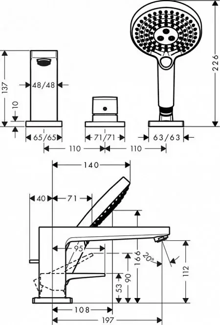 Hansgrohe Metropol Смеситель на борт ванны на 3 отверстия однорычажный, цвет: хром 32551000