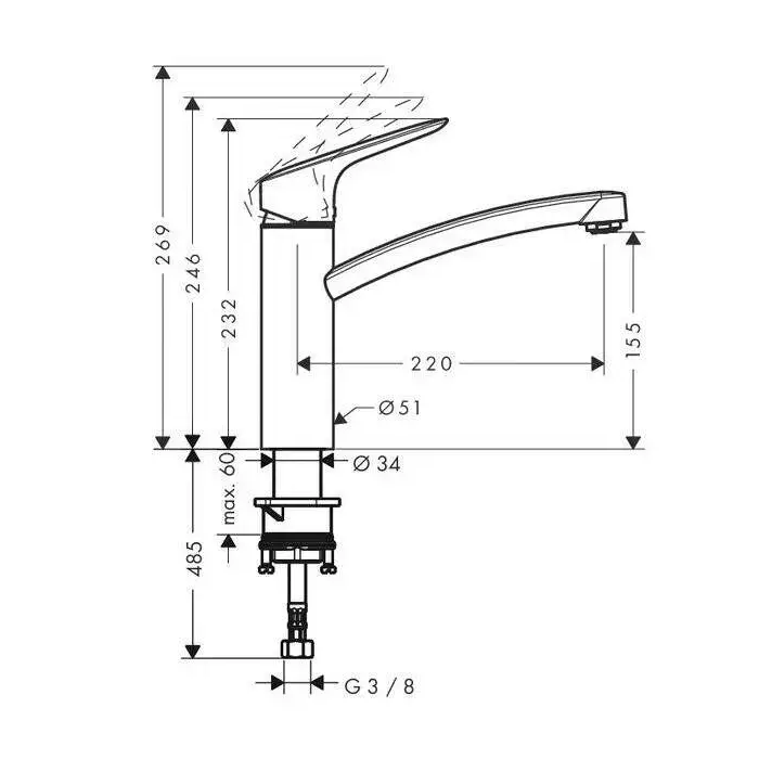 HG MySport Кухонный смеситель однорычажный, M, 1jet, хром