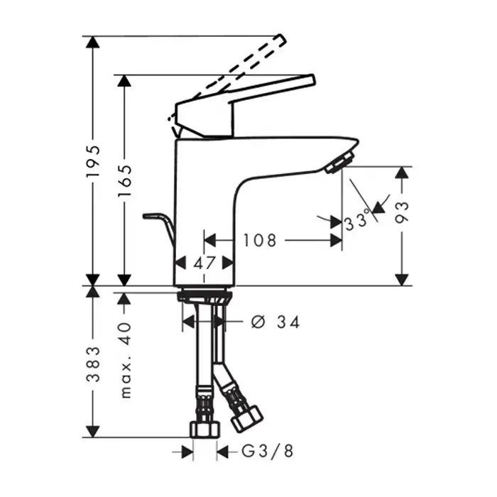 Hansgrohe Novus Loop Однорычажный смеситель для раковины 100, с рукояткой-петлей, с донным клапаном, хром