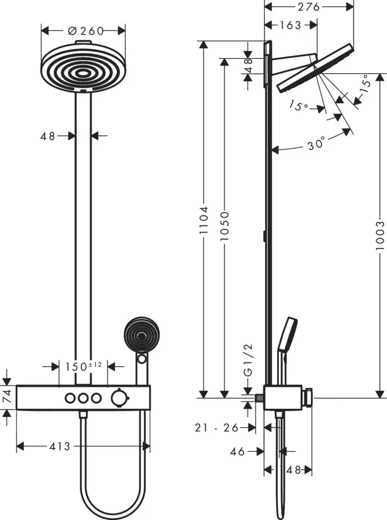 Hansgrohe Pulsify Душевая стойка: термостат, верхний душ 26 см, ручной душ, цвет: матовый черный 24240670