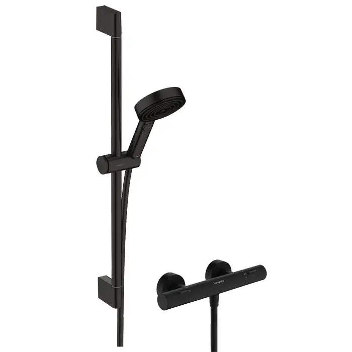 Hansgrohe Pulsify Select S Душевой комплект с термостатом, руч. душем и штангой 65 см, цвет: черный 24262670