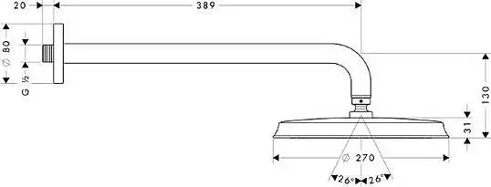 Hansgrohe Raindance Classic Верхний душ 27 см Air, 1 режим, кронштейн настенный 39 см, цвет: хром 27424000