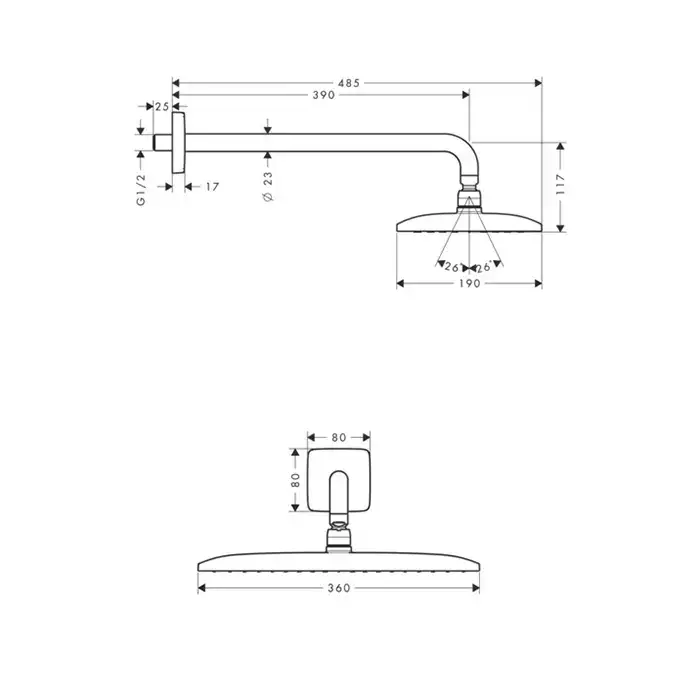 HG Raindance Е Верхний душ 1jet (RainAir), 360х190 мм, с настенным держателем 390 мм, G1/2, цвет: хром