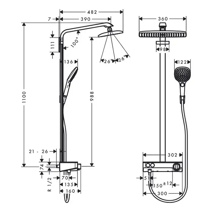 Hansgrohe Raindance E Душевая стойка: термостат, верхний душ 36x19 см, ручной душ, цвет: хром/белый 27288400