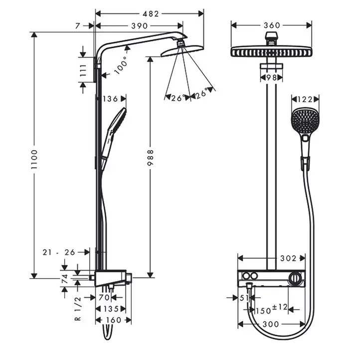 Hansgrohe Raindance E Душевая стойка: термостат, верхний душ 36x19 см, ручной душ, цвет: хром 27288000