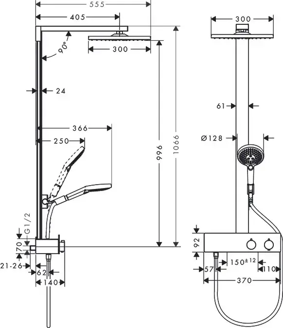 Hansgrohe Raindance E 300 1j. Душевая стойка с термостатом, ручным и верхним душем 30х30см., цвет: хром
