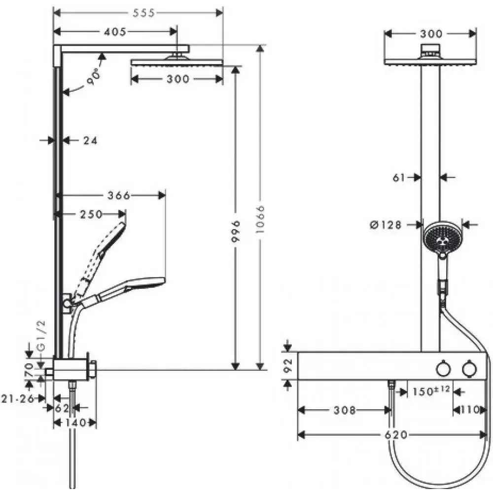 Hansgrohe Raindance E Душевая стойка: термостат,верхний душ EcoSmart 30x30 см,ручной душ, цвет: хром 27364000