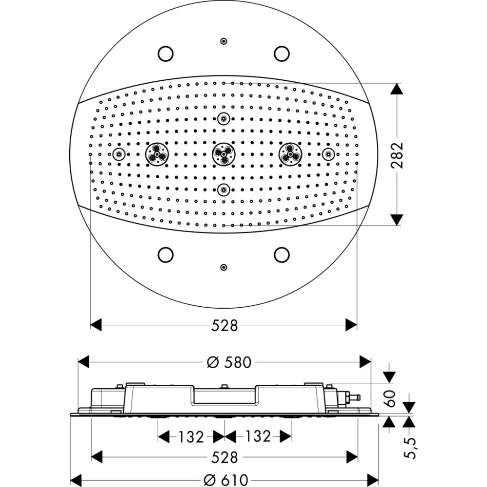 Hansgrohe Raindance Rainmaker Верхний душ встраиваемый в потолок 60 см, 3 вида струи, цвет: хром 26115000