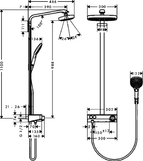 Hansgrohe Raindance Select E Душевая стойка: термостат, верхний душ 30x16 см, ручной душ, цвет: хром 27126000