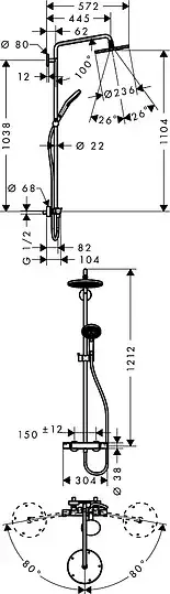 Hansgrohe Raindance Select S Душевая стойка: термостат, верхний душ EcoSmart 24 см, цвет: хром 27116000