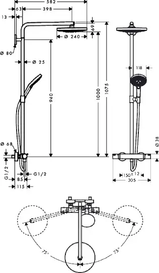 Hansgrohe Raindance Select S Душевая стойка: термостат, верхний душ 24 см, ручной душ, цвет: хром 27129000