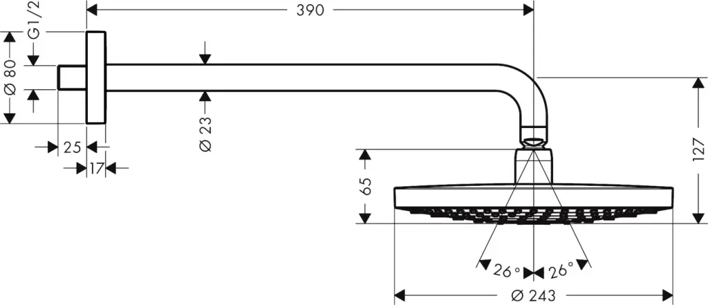 Hansgrohe Raindance Select S Верхний душ 24см EcoSmart,2 режима,кронштейн настенный 39см, цвет: хром 26470000