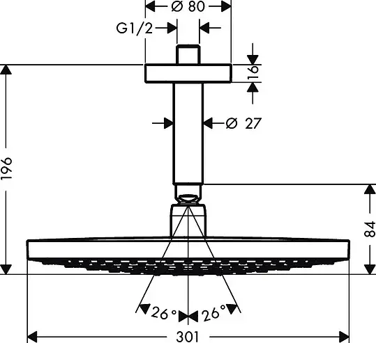 Hansgrohe Raindance Select S Верхний душ 30 см,2 режима,кронштейн потолочный 10 см, цвет: хром/белый 27337400
