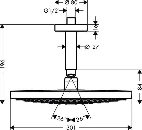 Hansgrohe Raindance Select S Верхний душ 30 см, 2 вида струи, кронштейн потолочный 10 см, цвет: хром 27337000