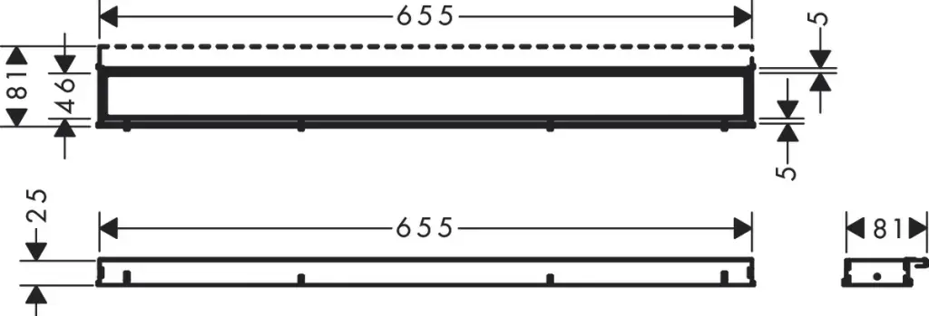 Hansgrohe RainDrain Внешняя часть лин. слива для душа 65,5х8,1х2,5h см, цвет: нерж. сталь 56037800