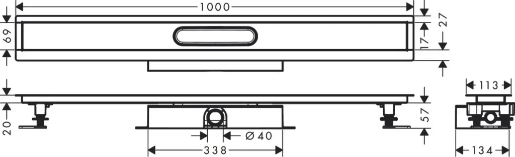 Hansgrohe RainDrain Внешняя часть трапа для душа 1000, с регулировкой по высоте, цвет: черный матовый