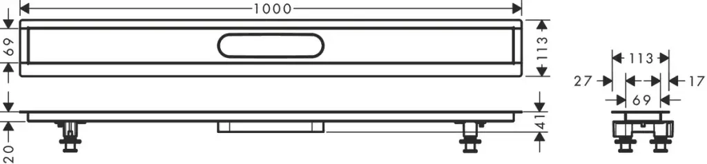 Hansgrohe RainDrain Внешняя часть трапа для душа 1000, с регулировкой по высоте, цвет: сталь