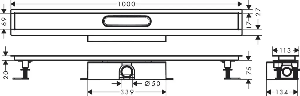 Hansgrohe RainDrain Внешняя часть трапа для душа 1000, с регулировкой по высоте, цвет: сталь