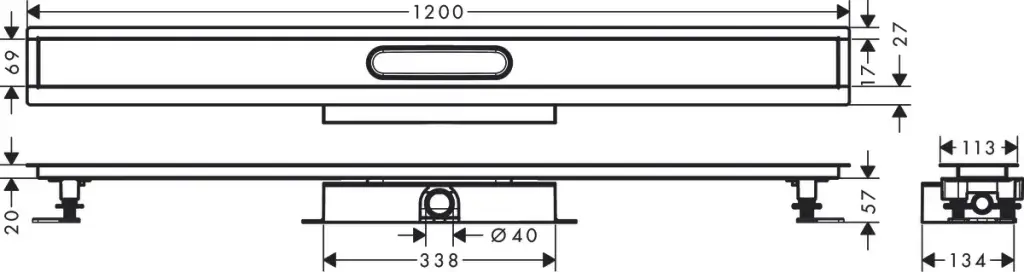 Hansgrohe RainDrain Внешняя часть трапа для душа 1000, с регулировкой по высоте, цвет: черный матовый