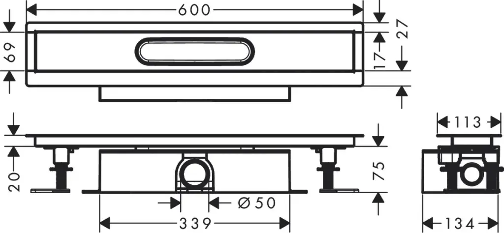 Hansgrohe RainDrain Внешняя часть трапа для душа 1000, с регулировкой по высоте, цвет: сталь
