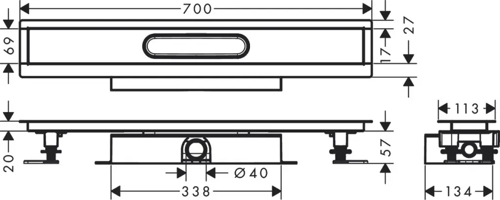 Hansgrohe RainDrain Внешняя часть трапа для душа 1000, с регулировкой по высоте, цвет: черный матовый