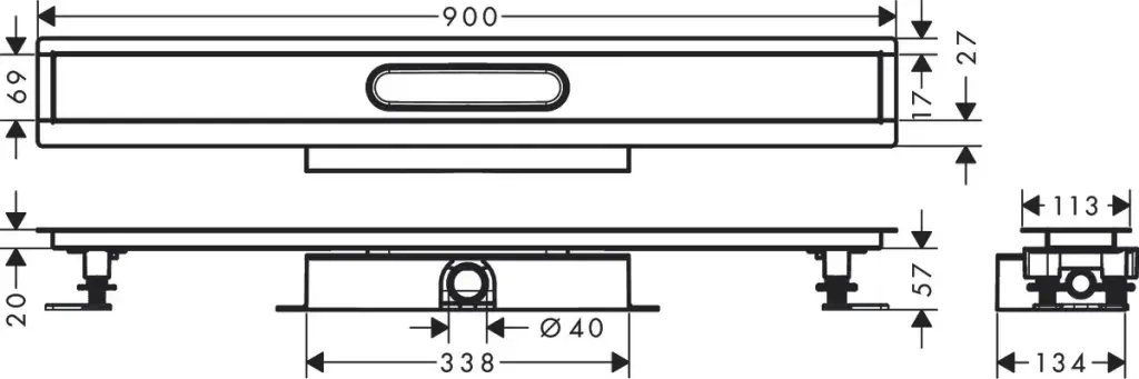 Hansgrohe RainDrain Внешняя часть трапа для душа 900, с регулировкой по высоте, цвет: черный матовый