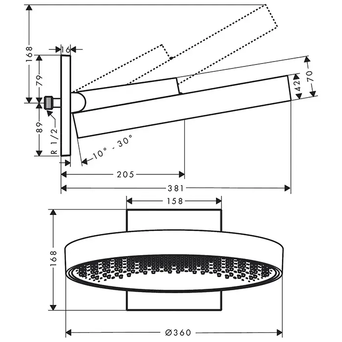 Hansgrohe Rainfinity Верхний душ, d=360мм, 1 jet, с настенным держателем, цвет: хром