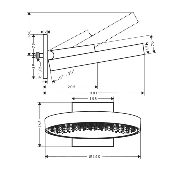 Hansgrohe Rainfinity Верхний душ, d=360мм, 1 jet, с настенным держателем, цвет: хром