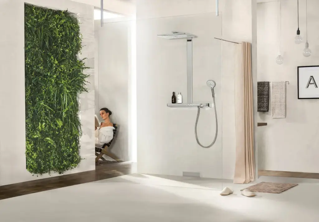 Hansgrohe Rainmaker Select Душевая стойка: термостат,верхний душ 3 режима EcoSmart, цвет: хром/белый 27029400