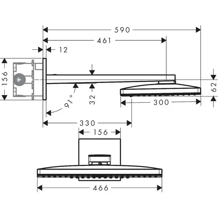 Hansgrohe Rainmaker Select Верхний душ 47x30, 3jet, кронштейн настенный, цвет:хром/черный матовый 24007600