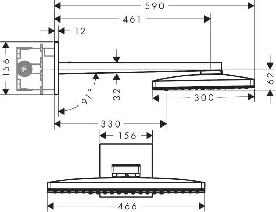 Hansgrohe Rainmaker Select 460 Верхний душ 46х30см., настенный, цвет: хром/черный