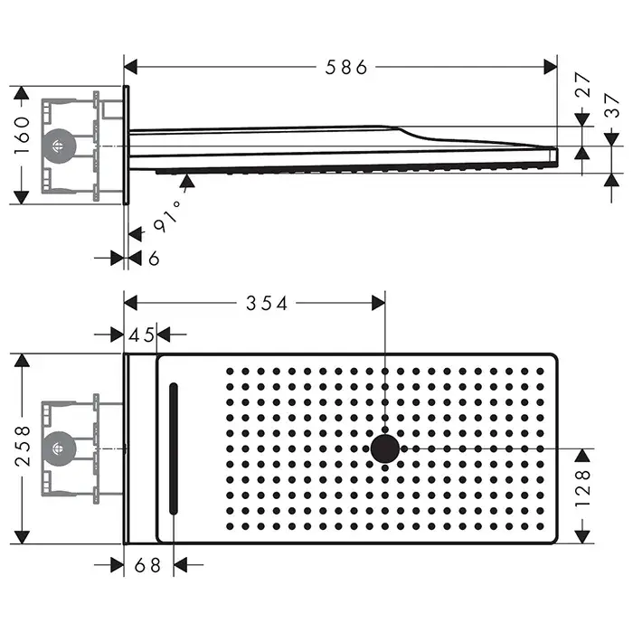 Hansgrohe Rainmaker Select Верхний душ встраиваемый на стену 26x59см EcoSmart 3jet, цвет: хром/белый 24011400
