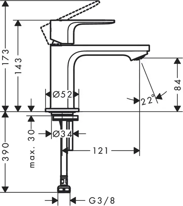 Hansgrohe Rebris E Смеситель для раковины однорычажный, без донного клапана, цвет: хром 72560000