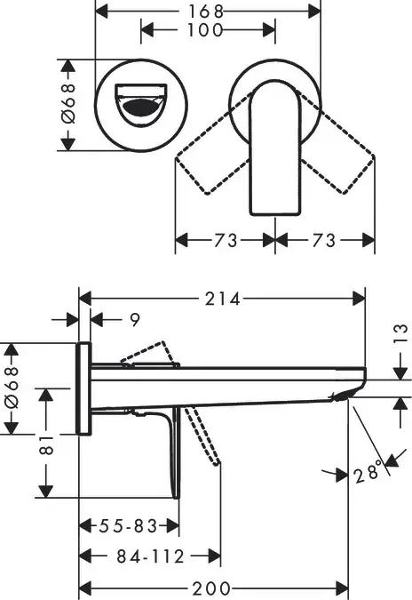 Hansgrohe Rebris E Смеситель для раковины встраиваемый, внешняя часть, цвет: матовый черный 72568670