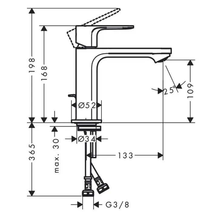 Hansgrohe Rebris S Смеситель для раковины, 1 отв., с донным клапаном, цвет: черный матовый