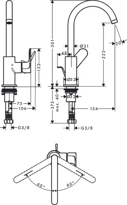 Hansgrohe Rebris S Смеситель для раковины 210 с поворотным изливом, цвет: матовый черный 72536670